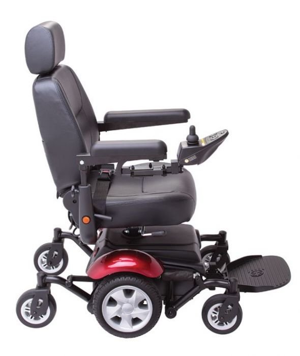 Cadira de rodes elèctrica R300 Suspensió en les 6 rodes Longitud: 78 cm (sense reposapeus) / 100 cm (amb reposapeus) |